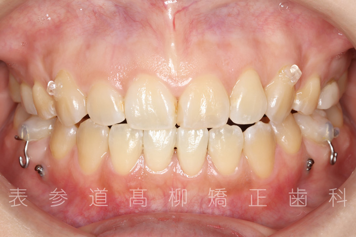 ・歯科矯正用アンカースクリュー(i-station)を併用し、前歯部を後方へ移動する